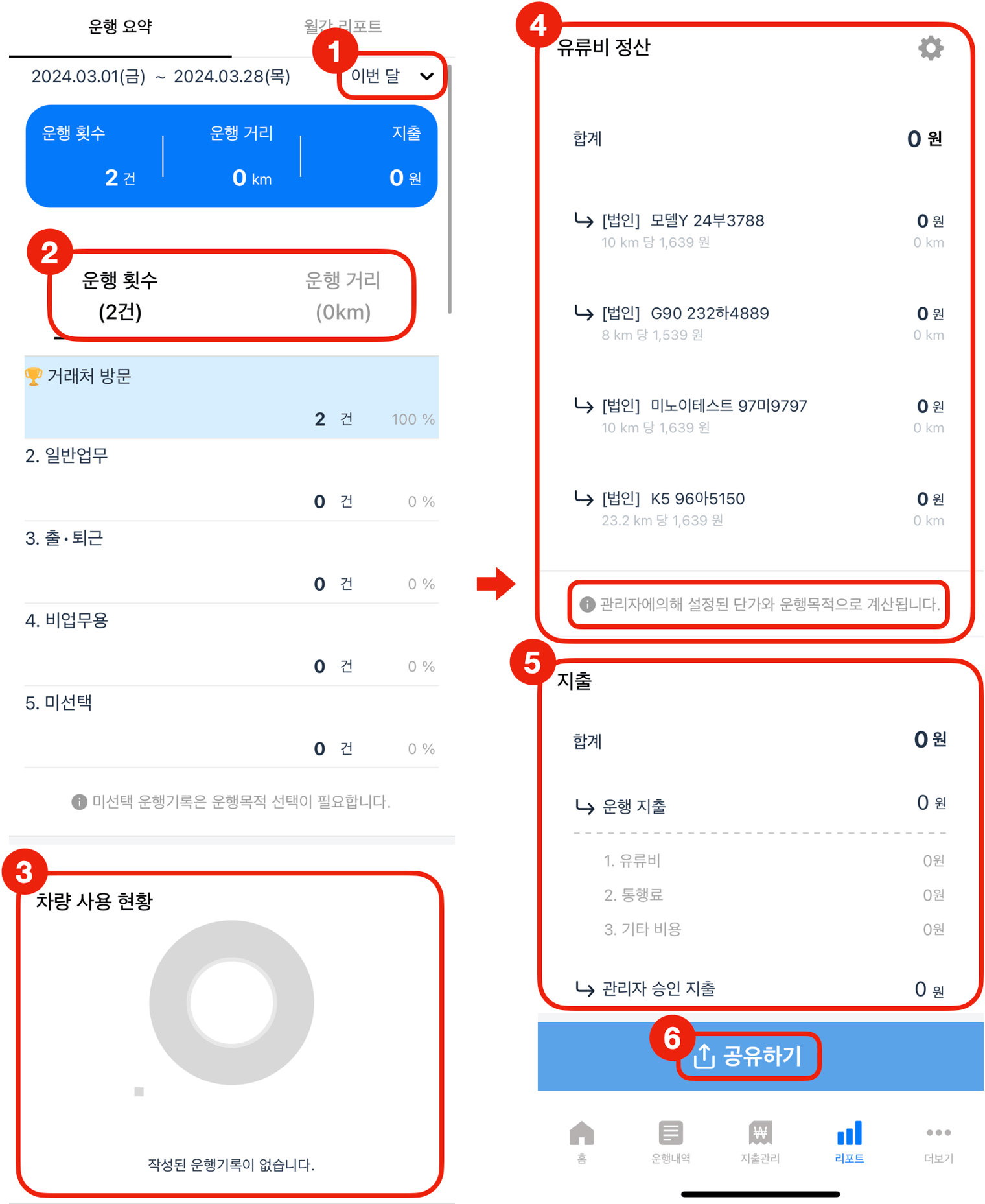 → 유류비는 관리자에 의해 설정된 단가와 운행목적으로 계산되니 참고해 주세요.