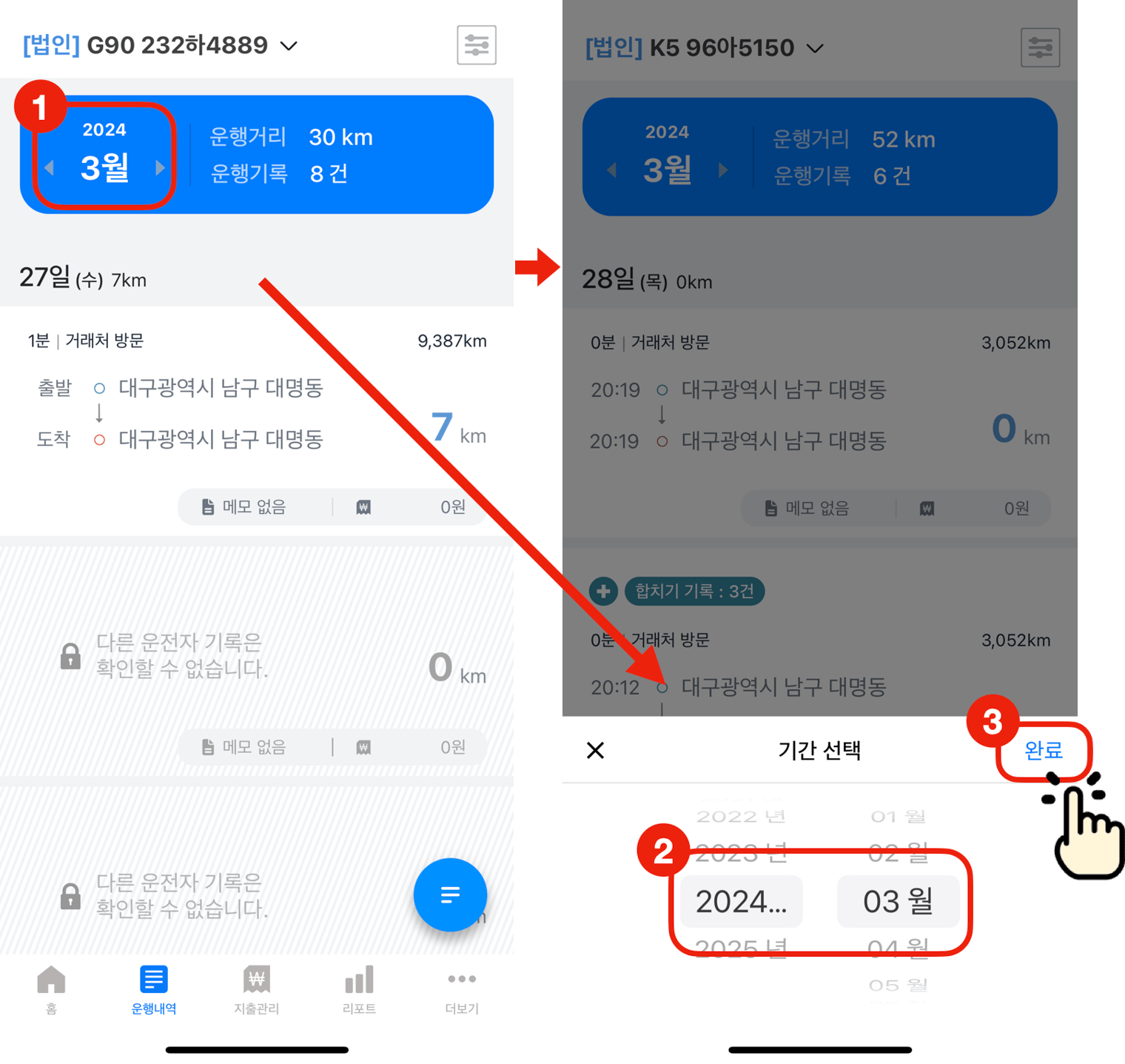 2. 확인이 필요한 '운행목적' 종류로 변경합니다.