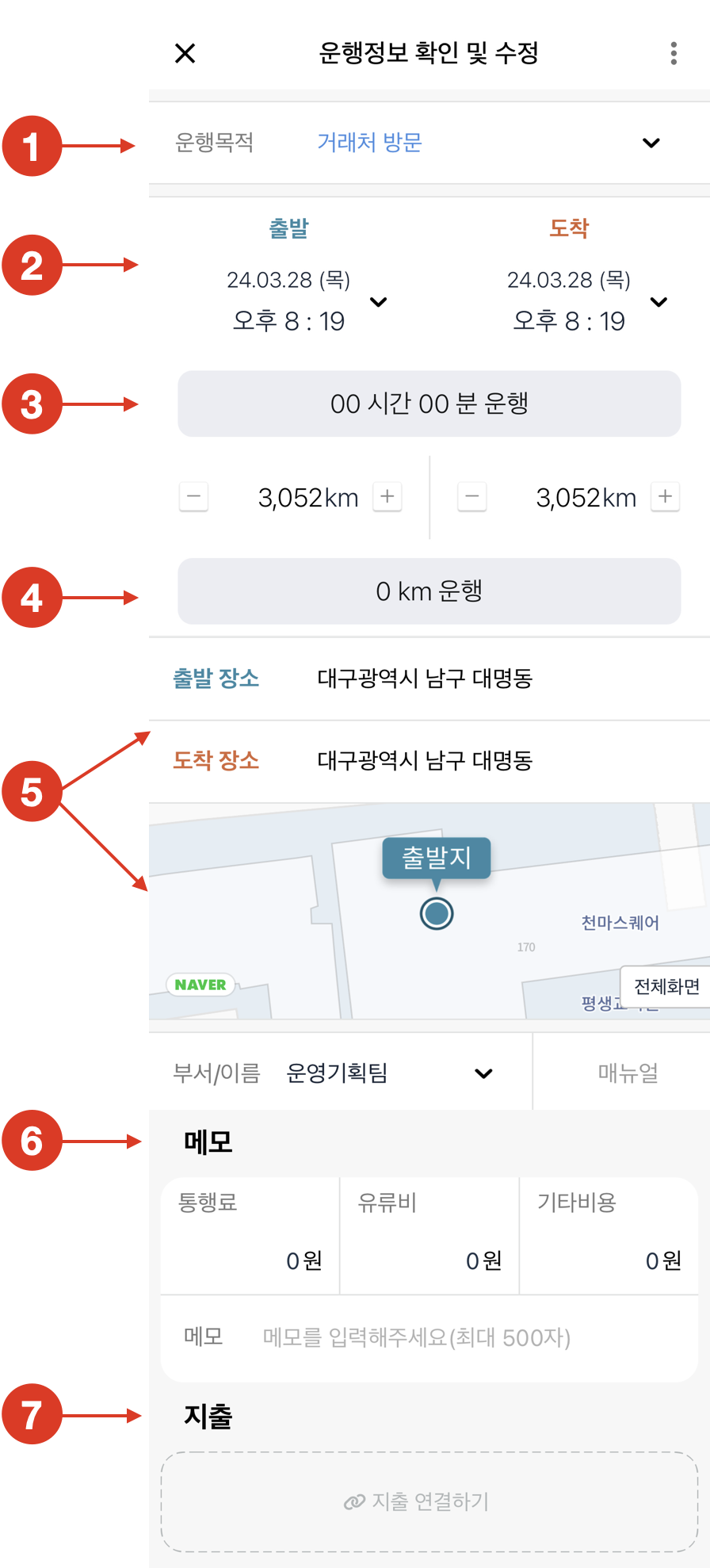 7.운행 중 지출 내역 | 지출내역을 연결해 관련 정보를 확인할 수 있습니다. |
