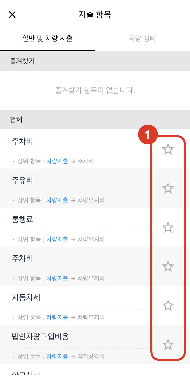 2. 지출 목록 중 등록할 항목을 선택합니다.