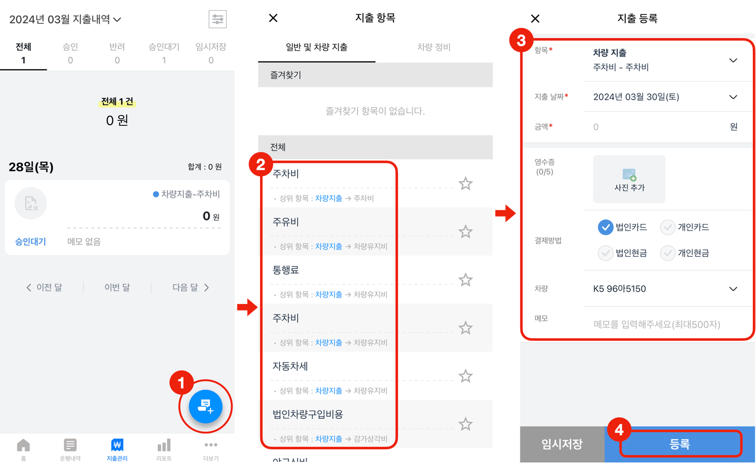 a. '지출등록' 버튼을 누릅니다.